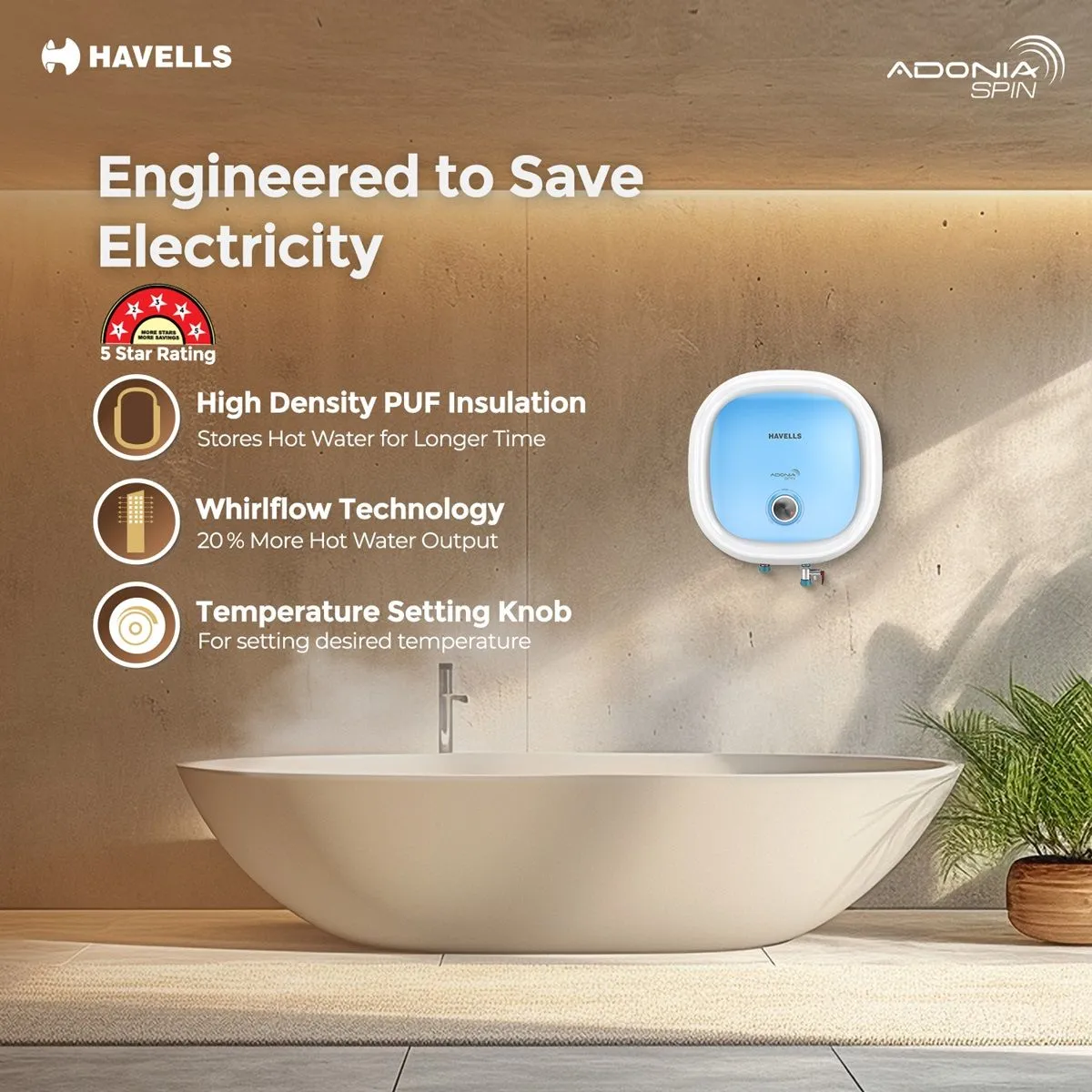Be the first to review “Adonia Spin Storage Water Heater (Geyser) 10 L White Blue”